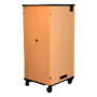 Puidust, ratastega laadimiskapp.