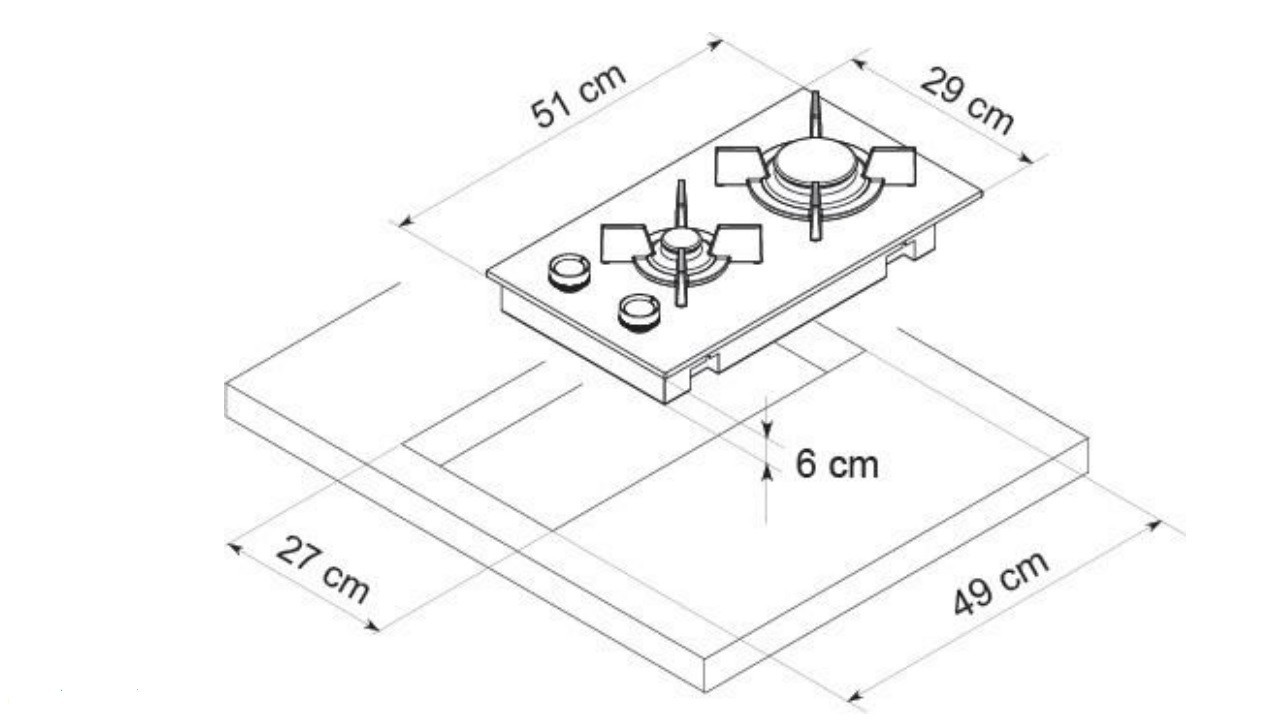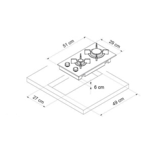 Põletite arv 2 Malmrestid + Integreeritud süüde + Leegikontroll + Pöördnupud + Arvestuslik koguvõimsus, W 4000 Välismõõdud L x S, mm 290 x 510 Integreerimismõõdud L x S, mm 270 x 490 Laius, cm 30 Värv Must