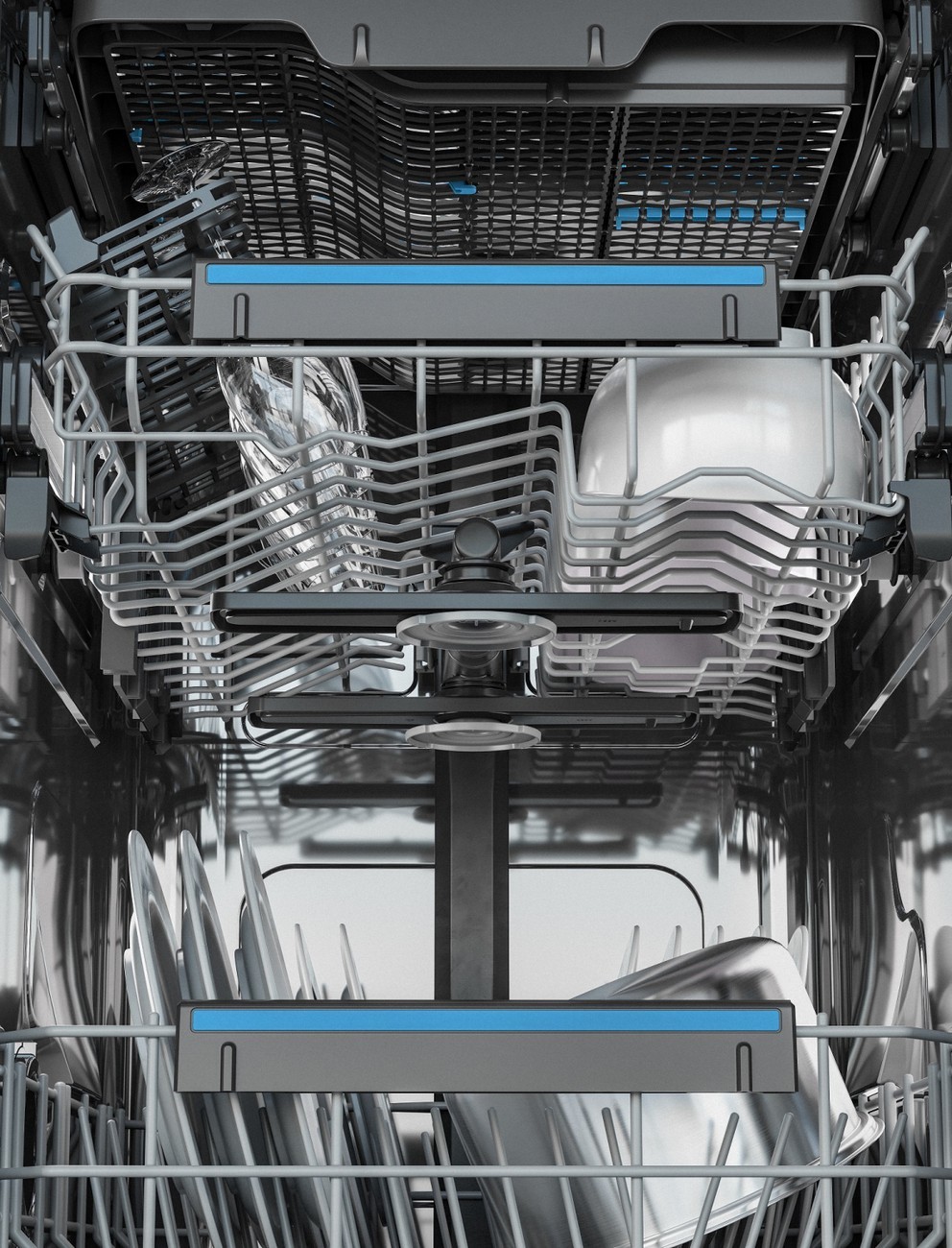 FlexiLift süsteemiga ülemine korv, FlexiSpray satelliitpihusti, reguleeritava kõrgusega ülemine korv, GlassCare®, QuickSelect®