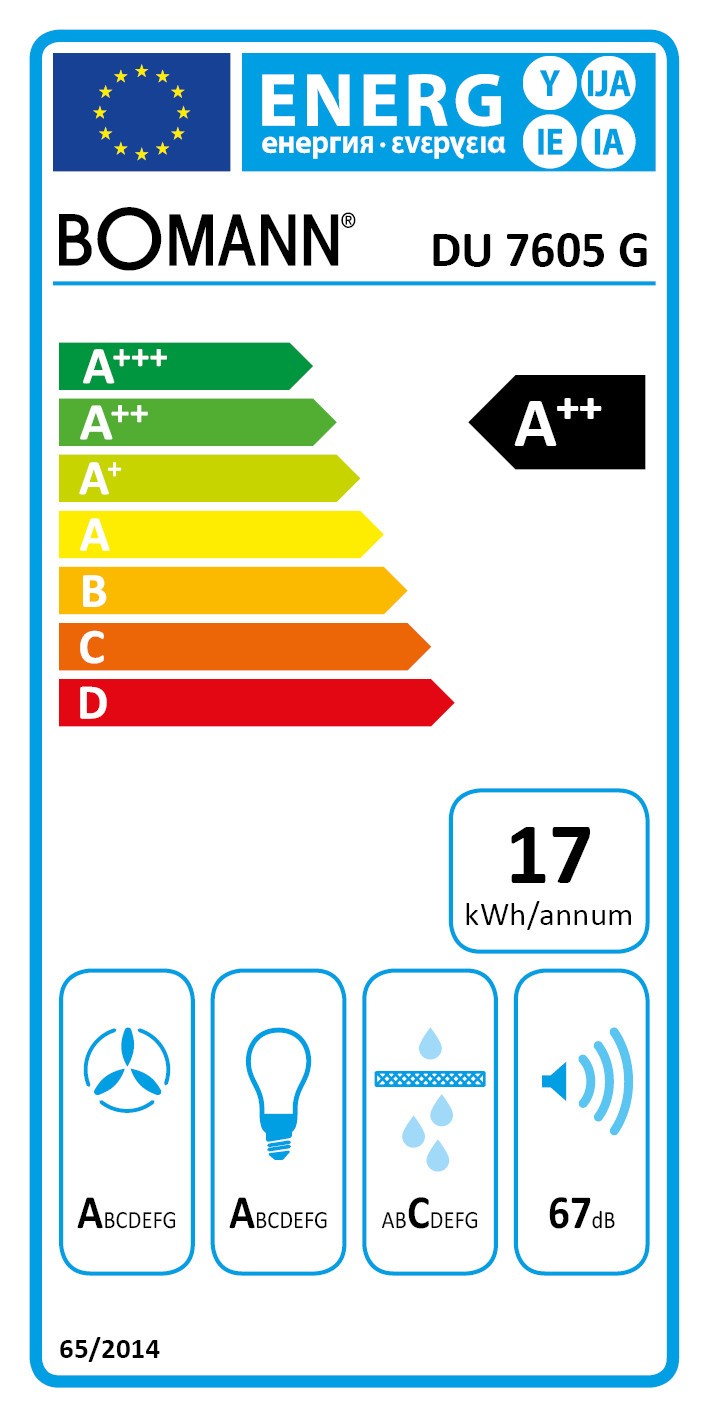 Tõmbevõimsus maksimaalne, m3/h 529 Tõmbevõimsus minimaalne, m3/h 188 Energiaklass A++ Müratase minimaalne, dB 44 Müratase maksimaalne, dB 67 Äratõmbetõhususe klass A Rasva filtreerimise tõhususe klass C Valgustuse tõhususe klass A Võimsusastmed 3 Juhtimine Viipejuhtimine Disain Kaldus klaasiga Perimeeter äratõmme + Värv Must Mootori tüüp Harjadeta Viitstopp + Väljalaskeava läbimõõt, mm 150 Valgustus 2 x 1 W LED Õhupuhastaja laius, mm 600 Õhupuhastaja sügavus, mm 408