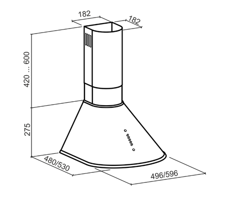 Tõmbevõimsus maksimaalne, m3/h 775 Energiaklass B Müratase minimaalne, dB 55 Müratase maksimaalne, dB 73 Äratõmbetõhususe klass B Rasva filtreerimise tõhususe klass E Valgustuse tõhususe klass A Võimsusastmed 3 Juhtimine Vajutatavad nupud Disain Püramiid Värv Roostevaba teras Väljalaskeava läbimõõt, mm 150 – 120 Valgustus 2 x 3 W LED Õhupuhastaja laius, mm 500 Õhupuhastaja sügavus, mm 480