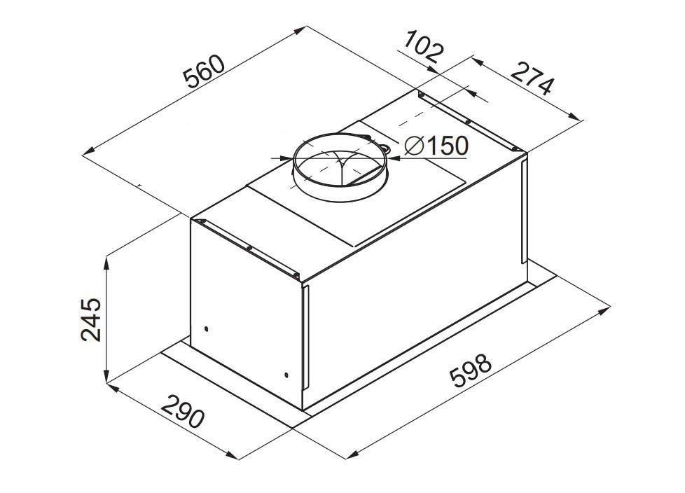 Tõmbevõimsus maksimaalne, m3/h 645 Tõmbevõimsus minimaalne, m3/h 235 Energiaklass B Müratase minimaalne, dB 51 Müratase maksimaalne, dB 69 Äratõmbetõhususe klass B Rasva filtreerimise tõhususe klass C Valgustuse tõhususe klass A Võimsusastmed 3 Juhtimine Vajutatavad nupud Värv Roostevaba teras Integreerimisava kõrgus, mm 245 Integreerimisava laius, mm 560 Väljalaskeava läbimõõt, mm 150 Integreerimisava sügavus, mm 274 Valgustus 1 LED valgusriba Õhupuhastaja kõrgus, mm 245 Õhupuhastaja laius, mm 598 Õhupuhastaja sügavus, mm 290 Kapi laius, cm 60