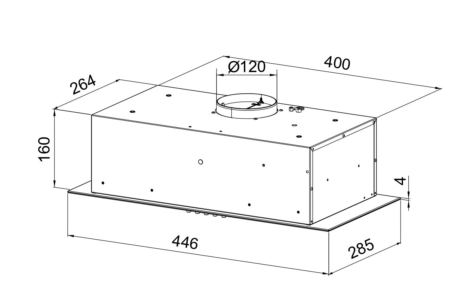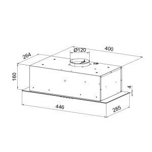 Tõmbevõimsus maksimaalne, m3/h 315 Tõmbevõimsus minimaalne, m3/h 190 Energiaklass C Müratase minimaalne, dB 52 Müratase maksimaalne, dB 64 Äratõmbetõhususe klass D Rasva filtreerimise tõhususe klass D Valgustuse tõhususe klass A Võimsusastmed 3 Juhtimine Vajutatavad nupud Värv Valge Integreerimisava kõrgus, mm 160 Integreerimisava laius, mm 400 Väljalaskeava läbimõõt, mm 120 Integreerimisava sügavus, mm 264 Valgustus 2 x 5 W LED Õhupuhastaja kõrgus, mm 164 Õhupuhastaja laius, mm 446 Õhupuhastaja sügavus, mm 285 Kapi laius, cm 45